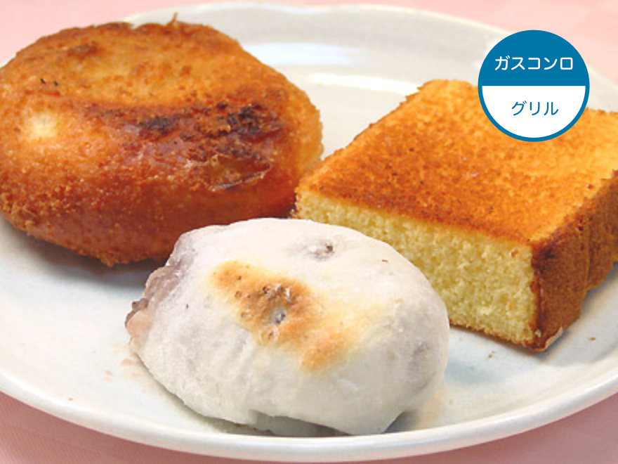 グリルでさっと焼くと、大福やカステラが一味違ったおいしさに! サクサクでアツアツのカレーパンを、ぜひお試しください。